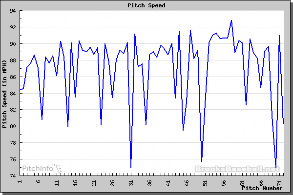 Hector struggled to eclipse 90 mph early on, though he did appear to loosen up as the game progressed. (Data below from BrooksBaseball.net)