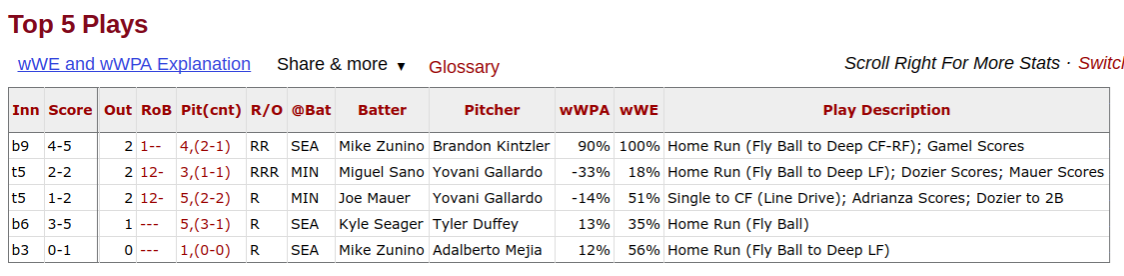 In three starts since returning from Rochester, Gibson has a 5.63 ERA. Current Mariners have hit .232./.286/.348 off Gibby, with their only home run coming from Jarrod Dyson, who has gone deep just nine times in 1,740 career PAs. The only Twins hitter who has faced Bergman, a former Rockies pitcher, is Adrianza (1-for-3).