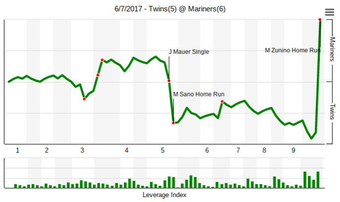 The only Twins hitters who failed to reach base were Robbie Grossman and Byron Buxton, and the team went 3-for-4 with runners in scoring position. Miguel Sano hit his 15th home run of the season, a three-run blast (see below). The only other extra-base hit was an Ehire Adrianza double.
