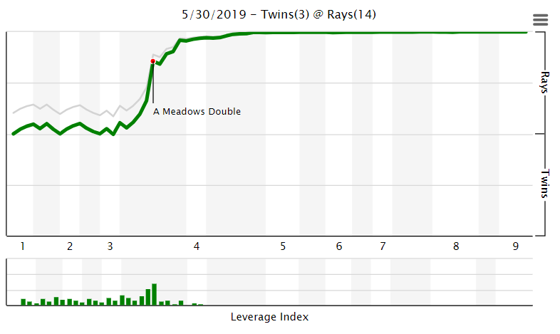 Zack Littell was able to come in and stop the bleeding, but that was short-lived as he came out in the bottom of the fourth and gave up five more runs on six hits and a walk. The inning probably would have been much worse if it weren’t for Byron Buxton making this spectacular catch to rob Daniel Robertson of a single to lead off the inning.