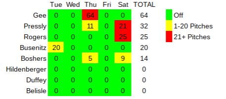 Here’s a quick look at the number of pitches thrown by the bullpen over the past five days:
