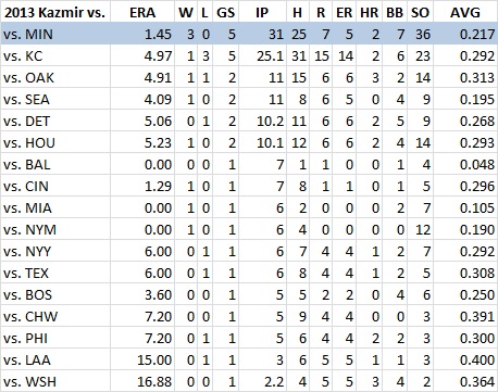 For the opener, the A’s will have Scott Kazmir take the hill, who they signed this offseason to replace Bartolo Colon. Kazmir spent last year torturing the Twins when we was with the Cleveland Indians. He started five games against the Twins, threw 31 innings and had just a 1.45 ERA in those games. In fact, one could make a case that Kazmir should send the Twins a thank you note for the 2-year, $22 million contract he got. Without those games against the Twins, his overall would’ve climbed from 4.04 to 4.67.