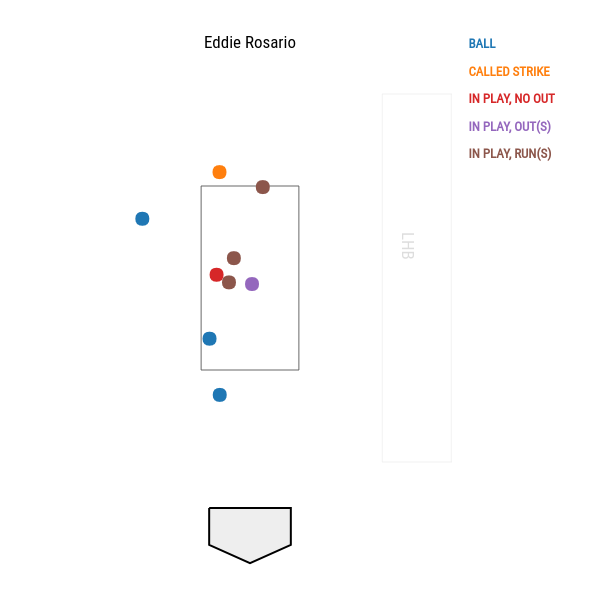For Rosario, it was the first multi-homer game of his career. That alone is impressive, but what was especially peculiar about his night is he saw just nine total pitches. That’s not odd for the ultra-aggressive Rosie, but I wonder how many times a guy has hit three homers while seeing less than 10 pitches in game.