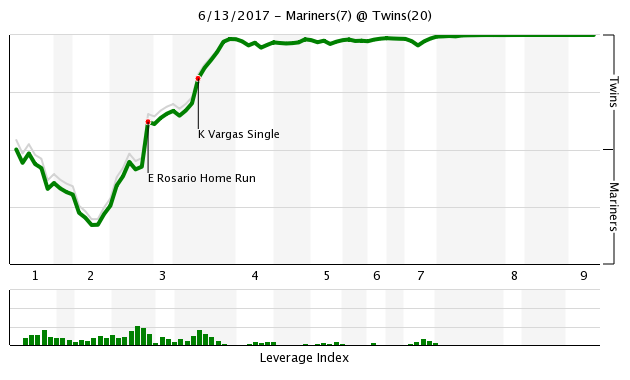 Eduardo Escobar led the team’s march into the record books with a five-hit game. Kennys Vargas, Jason Castro and Rosario each had four hits. The Twins tallied seven runs in both the third and seventh innings. Run differential fixed.