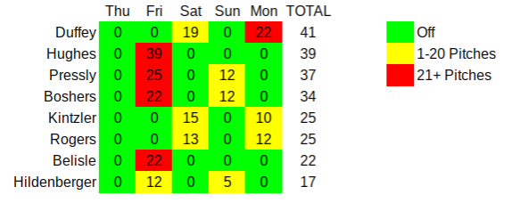 Here’s a quick look at the number of pitches thrown by the bullpen over the past five days: