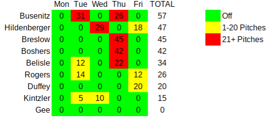 Here’s a quick look at the number of pitches thrown by the bullpen over the past five days: