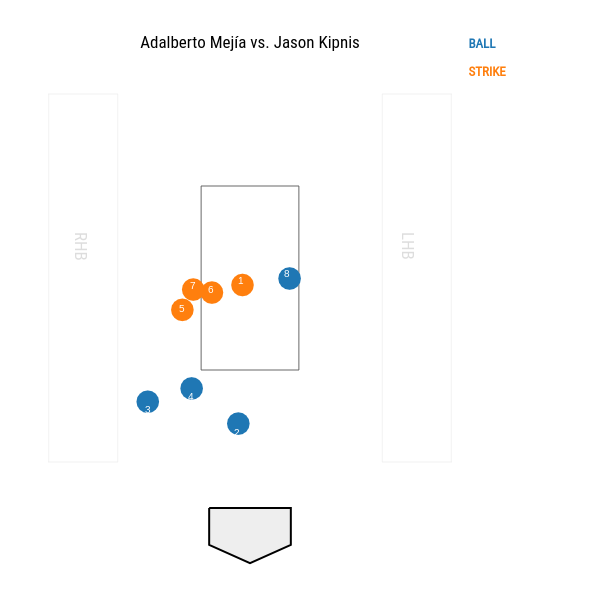 In the bottom of the second and with Mejia having already issued two free passes in the inning, Jason Kipnis worked a draining eight-pitch walk to load the bases. Ball four looked awfully good.