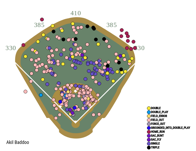 Baddoo’s also not just a strict pull hitter, another common issue among lower-level prospects. That should keep opposing teams from employing any extreme shifts against him. Here’s a look at his spray chart: