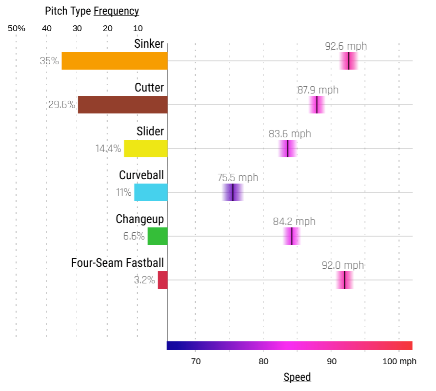 Last outing: 6.0 IP, 7 H, 2 ER, 1 BB, 9 K, 100 pitches