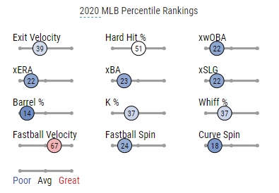 Brady Singer is largely a two pitch pitcher with an occasional changeup. He throws the fastball (56.5%), slider (35.7%) and changeup (7.8%). The fastball is his best pitch as hitters are batting just .185 against it but the slider has not been effective early on. Hitters are batting .348 with a 91.2 MPH exit velocity.