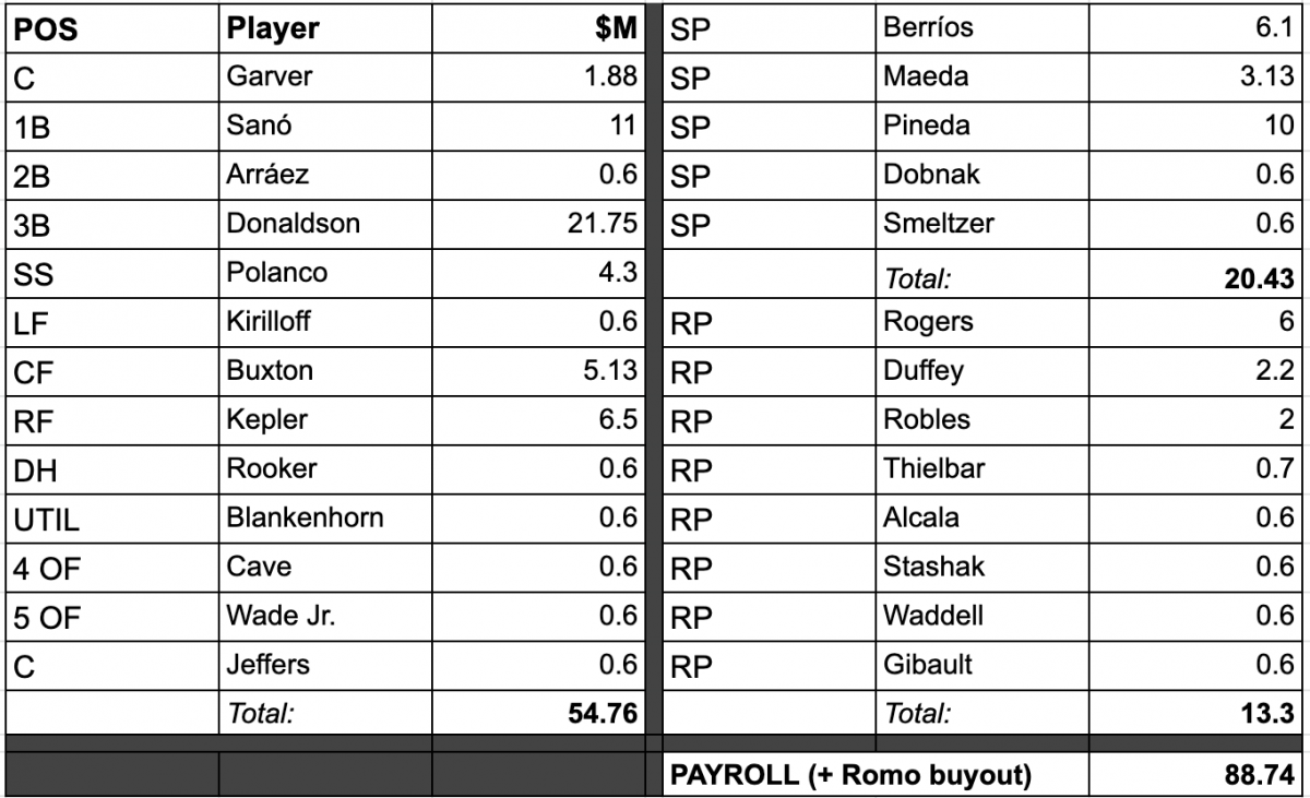 After signing reliever Hansel Robles for $2 million on Tuesday (more on that shortly) here's a snapshot of Minnesota's projected 2021 roster and payroll: