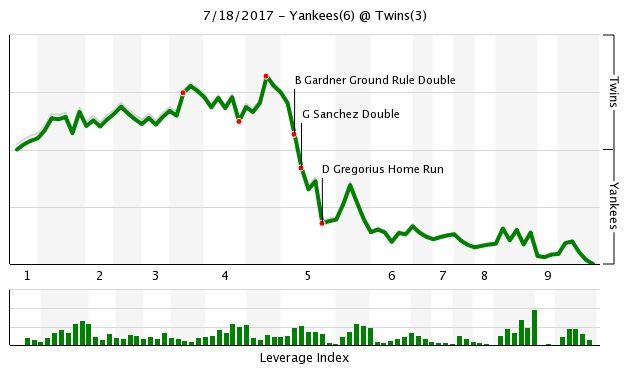Win Expectancy & Top 5 Plays Per WPA (via Fangraphs)