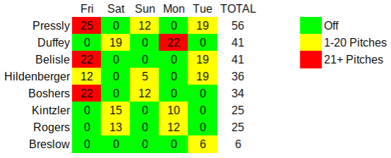Here’s a quick look at the number of pitches thrown by the bullpen over the past five days: