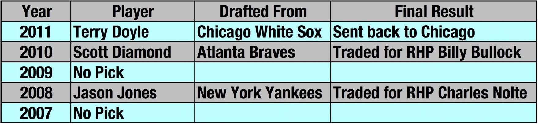 Here is a look at the Twins last five Rule 5 drafts: