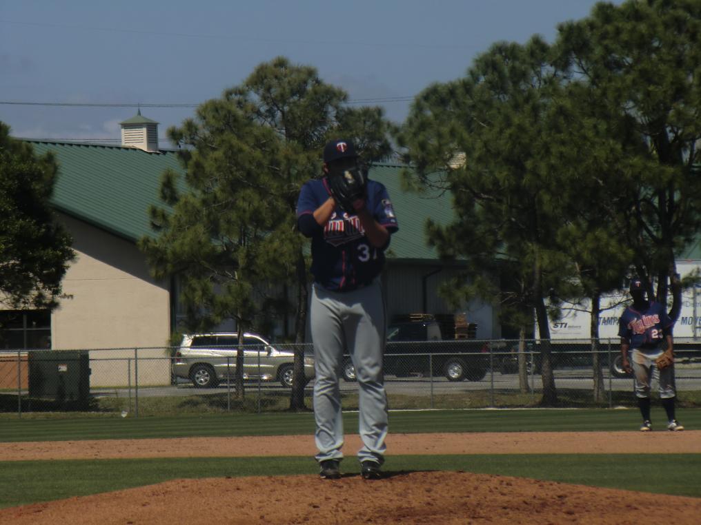 The biggest news was that Matt Guerrier made his first appearance in a game on the mound. It wasn’t a big league game, but it was a milestone for the 35 year old veteran nonetheless. He looked good. The first batter he faced was Byron Buxton who hit a hard ground ball that third baseman Tony Thomas dove to his left for, got up and got him by a half step. The next batter was Jorge Polanco and he grounded out as well. John Murphy came up and hit a fly ball to left center that should have been an easy out, but it dropped for a double. Good thing Tom Kelly didn’t see that. Guerrier walked the next batter before getting the final out on a lazy fly ball.