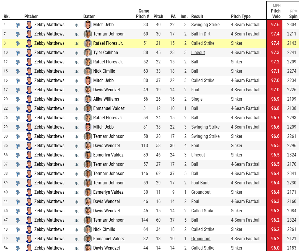 Combined no hitters are meaningless to me. Nothing more than the equivalent of a participation trophy. Glad they have value to somebody, but I only care if somebody goes the distance. Obviously, that is kind of not a thing in the minors as it's really not what the minors are for, but it's what the game was about. Zebby clearly reaching back for an extra couple mph again. Only threw 1 curveball in the game.