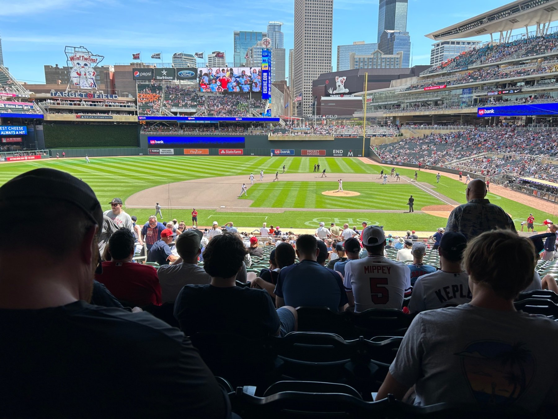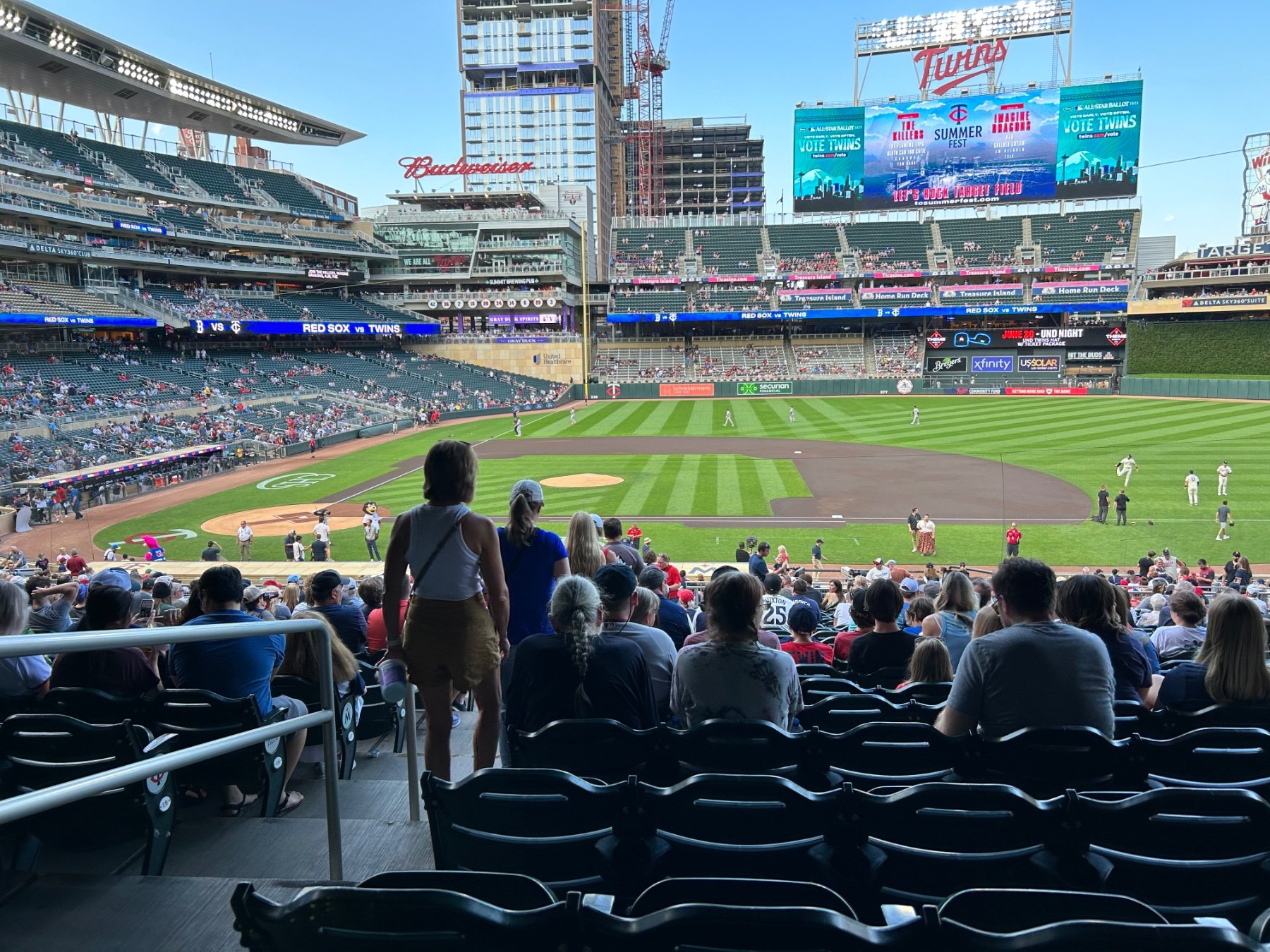 Next to us and in the row ahead of us were a family of seven celebrating the first birthday of the cutest Twins fan in attendance (and not my grandson!). Two grandmas, one grandpa, an uncle, two parents, and the birthday boy. All the cooing and squirming and parents leaning and turning made it hard to see either the pitcher or the batter or both. But hard to play Mrs. Grinch with all that baby goodness! The kid had a big smile on his face through all the ups and downs of the game, never a cry or a whine, unlike some of us grownup fans. 🤣🤣