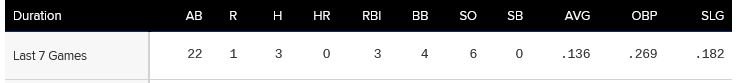 2. Julien, same old, same old. His glove is still made out of iron, .941 fielding percentage at 2nd. Minor league is where players learn, whether or not they are good enough for MLB. An iron glove should never be allowed unless they hit 40 home runs a year. Right now Keaschall has made his own problems, maybe he can fix them, or like Julien, maybe not, but if they hang around, they get fixed in AAA.