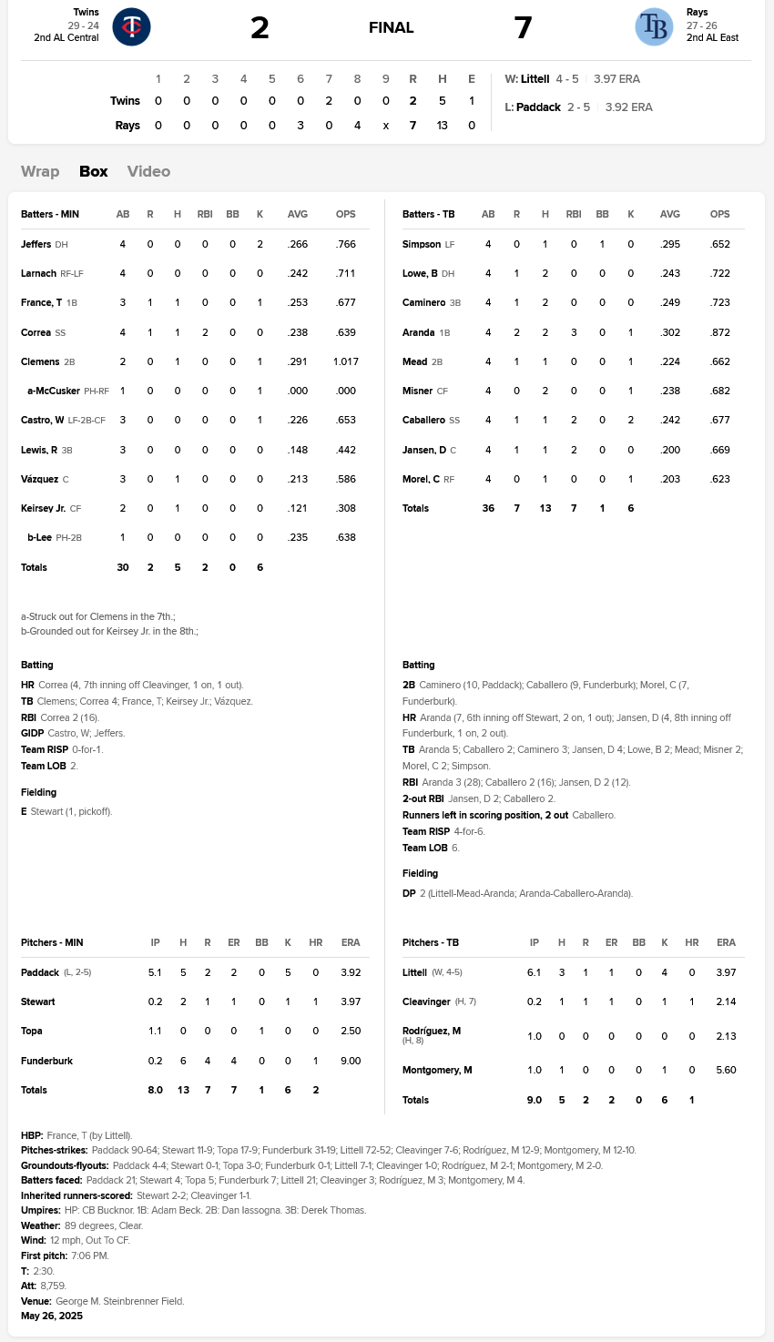 3) or, he is optioned back to St. Paul to work on his swing and timing similar to what we have seen with Larnach and Wallner with the expectation that he will be recalled when ready. Many of the best players in the game had to get sent back down at some point in their careers so hopefully Lewis would take this as a way to fix things out of the limelight.