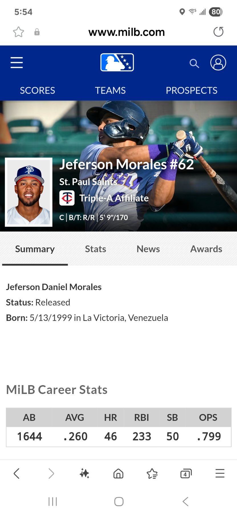 Another Culpepper, this time pitcher C.J. Culpepper, ranked #10 in the Twins organization, according to MLB.com. He struggled last year in Double-A before being shut down due to a forearm injury. He had trouble ramping up in spring training and was put on the IL with an undisclosed injury, but he is back pitching for the Wind Surge.